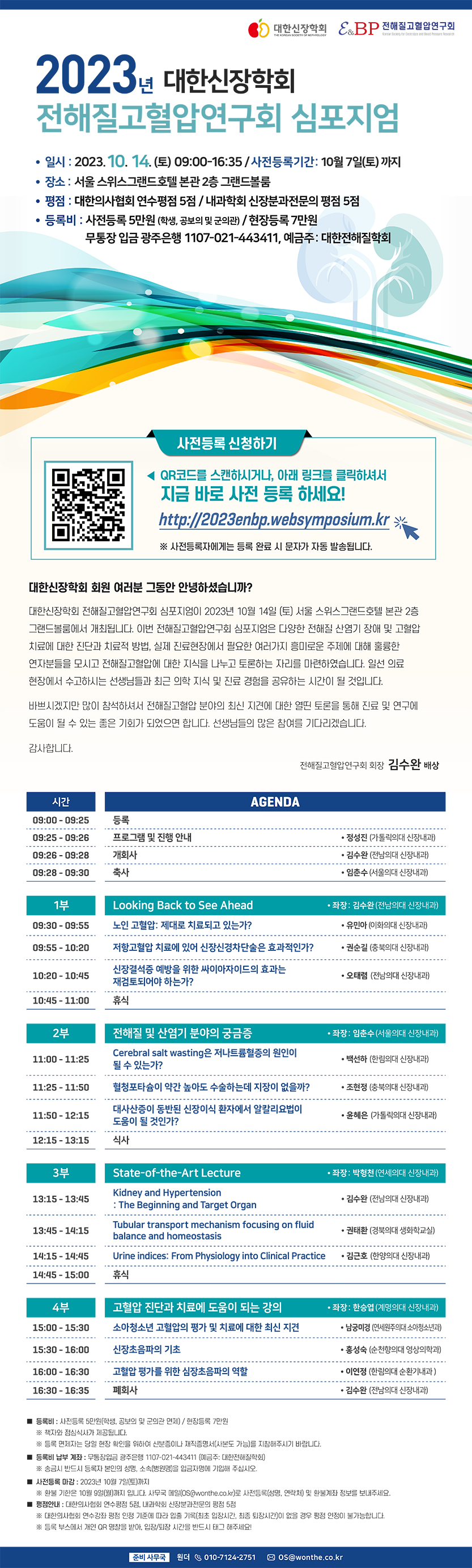 2023년 전해질고혈압연구회 심포지엄에 많은 관심과 참여 부탁드립니다.